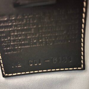 This bag is a mix of leather and straw. Silver zipper pulls inside. Adjustable closure flap with magnetic closure. Two short leather handles. Comes with original coach bag charm. Light blue fabric lining. Three interior sections - middle section has zipper to close. Another interior zippered pocket on side.
