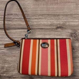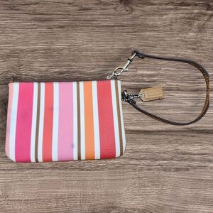 Coach Striped Wristlet In Bright Pink, Orange, and Red