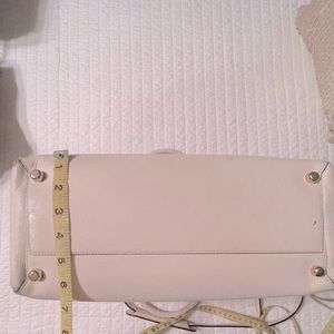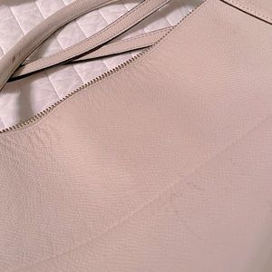 Coach leather handbag. Winter white with some wear from use as photos show. One of the small inside zippered pouches has lipstick stains. Let me know if you’d like additional photos.