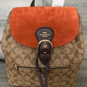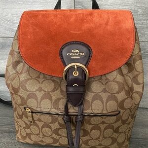 Coach Suede Kleo khaki multi backpack bagwomen signature.