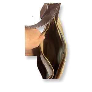 This is a gorgeous- excellent condition- shoulder bag. It’s suede front and back is lined by leather - the craftsmanship is elegant!