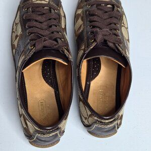 Coach Suee Khaki Chestnut Canvas Brown Leather Trim Sneaker Shoe Sz 8B A1258