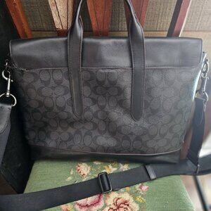 Elevate your style with the Coach men's bag in sleek black and gray. Men's Coach - Sullivan Portfolio Briefcase In Signature Canvas. Fits a large laptop perfectly and more. Options for hand straps or shoulder straps.