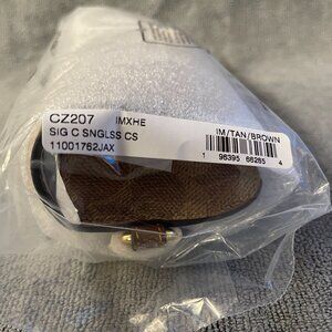 Signature coated canvas and smooth leather Turnlock closure fabric lining Attached dogleash clip 6 3/4 (L) x 3 (H) x 1 1/2 (W) Style No. CZ207