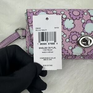 New With Tags, Coach Sunglass Case With Floral Print In canvas/Sv/Lily Multi Purple CBH02 NWT from smoke and pet free environment. Product Details: STYLE NUMBER * CBH02 MEASUREMENTS * Length: 6.75" * Height: 3.0" * Width: 1.5" MATERIALS * Printed coated canvas and smooth leather * Fabric lining FEATURES * Turnlock closure * Attached dogleash clip