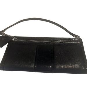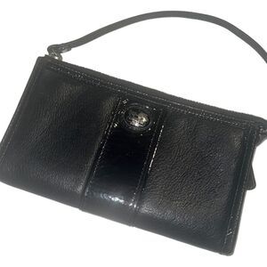 Coach Sutton Black Leather Top Zip Zippy Wallet Wristlet 47108