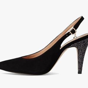 Style like a diva by wearing COACH Sutton Glitter Slingback Pump. Leather upper. Leather lining and insole. Slip-on style. Pointed toe. Adjustable slingback strap with buckle. Pointed heel with glitter details. Synthetic outsole.