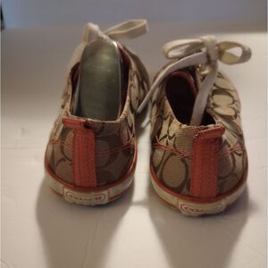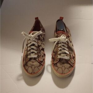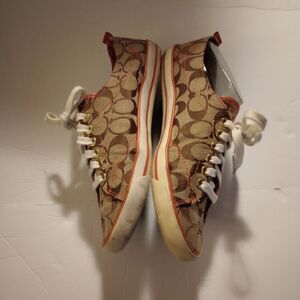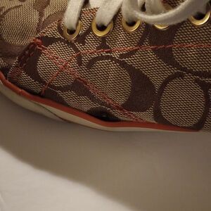 🆕👟Coach Suzzy Logo Jacquard Tan and Orange Sneakers