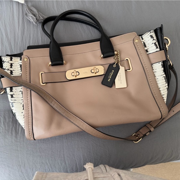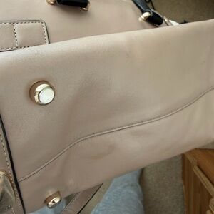 There are scratches, discoloration, marks, color transfer, stains etc. this is an old handbag which has been used so please keep that in mind. Feel free to ask questions or request more pictures