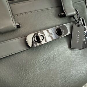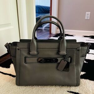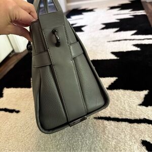 Stylish gray leather handbag with a sleek design. Perfect for everyday use. Excellent Preowned condition. Great bag, Just don’t use the gray as much as I should.