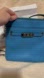 Coach Swagger Swingpack blue leather crossbody bag with metal hardware and turnlock. Double hangtags including 1 metal. Please see all photos for any wear including rubbing to corners and staining to the interior and zipper line.