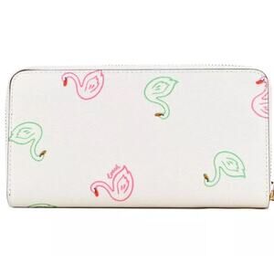 Coach Swan Print Long Zip Around Wallet Wristlet C8384 Chalk White Multi