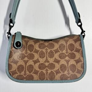 Coach Swinger 20 In Signature Canvas Purse Pewter/Aqua Tan Rust Y2K Leather Bag