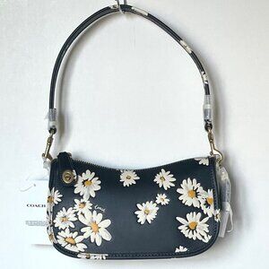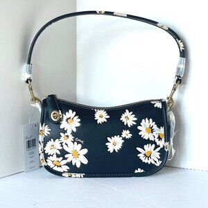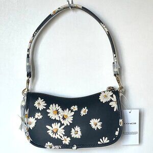 Coach Swinger Bag 20 Floral Daisy CR509 Black GloveTan Leather Shoulder ORIG PKG