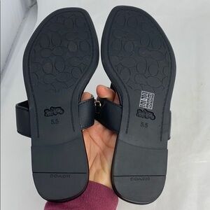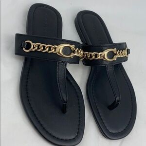 Coach Sz 5.5 Black Leather w/Gold logo Sandals