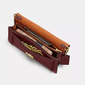 A modern take on an archival 1970s Coach design, the structured Tabby clutch is crafted of polished pebble leather. This organized, three compartment design has a secure interior zippered compartment and an exterior slip pocket for easy access to essentials. The versatile bag can be carried as a clutch or worn crossbody with the elegant chain strap. It’s finished with hand-braided leather trim for rich dimension in a nod to our heritage of fine craftsmanship.