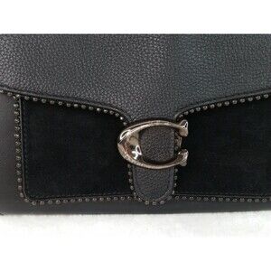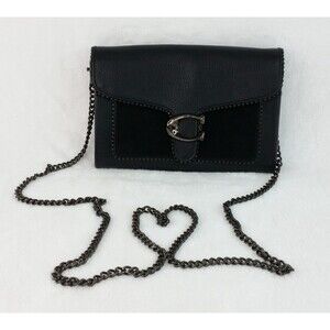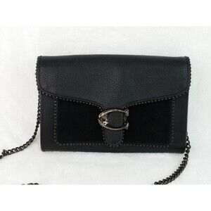 Coach Tabby Crossbody Pebble & Suede Leather Chain Clutch Pewter Black Bag