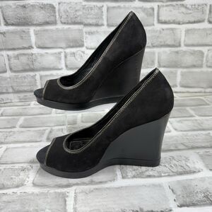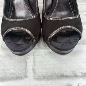 Coach Tabby Peep Toe Classic Coach Logo Heels Pumps Size 8.5 Wood Wedge