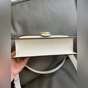 This stylish cream shoulder bag features a sophisticated gold accent, perfect for any occasion. Its sleek design and neutral color make it a versatile addition to your wardrobe.