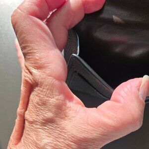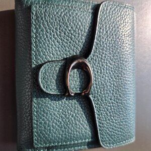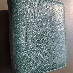 Hunter Green outside, brown inside. Soft leather. With 6 credit card slots and 1 ID slot. Coin compartment.