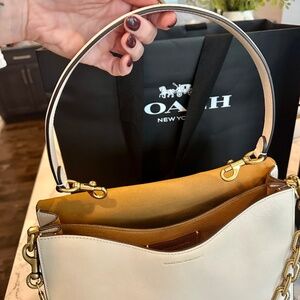 Comes with gold chain and both a shoulder and crossbody leather strap