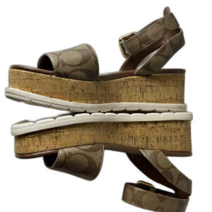 Coach Talulah Brown Signature Print Platform Ankle Strap Sandals Size 6B