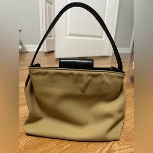 Coach Tan + Black Small Arm Purse Handbag Vintage Desinger Canvas + Leather 7417