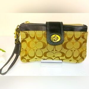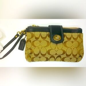 Coach Tan Brown Canvas Signature Logo Clutch/ Wristlet!