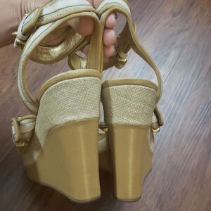 Coach Tan Cream Chic Leather Strappy Chic Feminine Summer Wedge Sandals Size 10