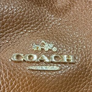 Chic Coach hobo bag in tan leather. Features adjustable strap and gold-tone hardware. Ideal for everyday use.