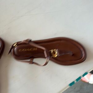 Coach Tan Leather Sandals with Gold Accents