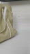 Stylish tan leather tote bag with white accents. Perfect for everyday use.