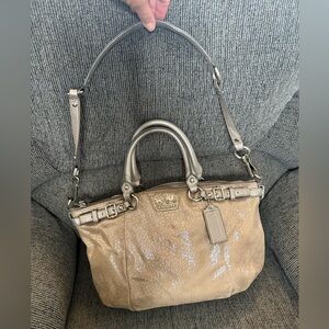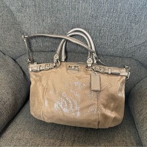 Coach Tan Metallic Madison Satchel with Double Handles and Detachable Strap