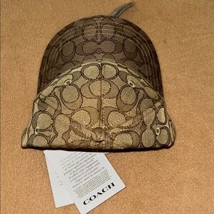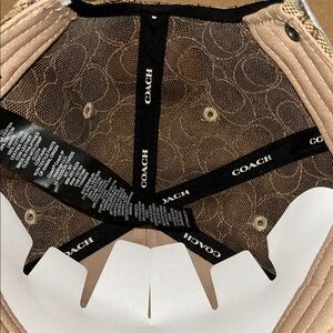 Elegant tan cap with signature Coach pattern. Ideal for everyday style.