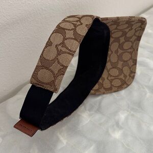 Elegant tan visor with signature Coach pattern. Ideal for sunny outings.