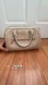 Chic Coach satchel in tan with iconic pattern. Features sturdy handles and elegant gold accents.