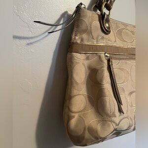Coach Tan Signature Tote Bag Classic C Monogrammed Fabric