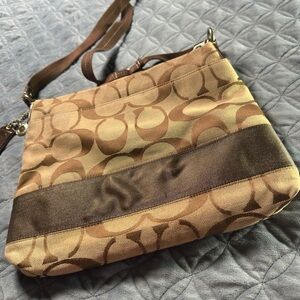 Coach Tan and Brown Crossbody Bag with Signature Monogram