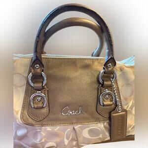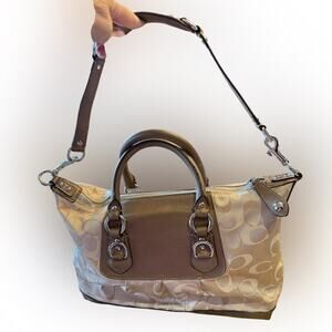 Coach Tan and Brown Hand/Shoulder Bag with Silver Accents