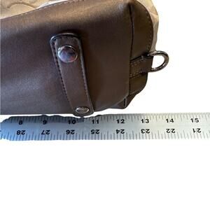 This stylish Coach bag is the perfect accessory for any outfit! The tan and brown color combination is classic and versatile, while the silver accents add a touch of elegance.