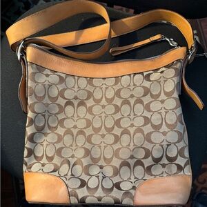 Coach Tan and Brown Monogram Shoulder Bag