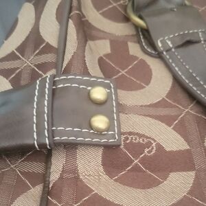 Elegant Coach hand bag with signature logo pattern. Features adjustable strap and secure closure.