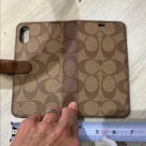 Elegant Coach phone case with signature pattern. Offers style and protection.