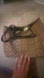 Elegant Coach tote with signature pattern. Features tan and brown design. Includes gold hardware accents.