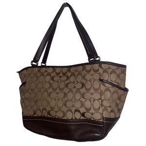 Coach Tan and Deep Brown Leather Signature Carrie Tote