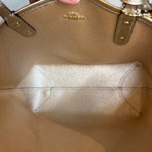 Coach Tan and Gold Signature Shoulder Bag