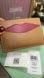 Elegant Coach card holder in tan with a purple lip design. Perfect for stylish organization.