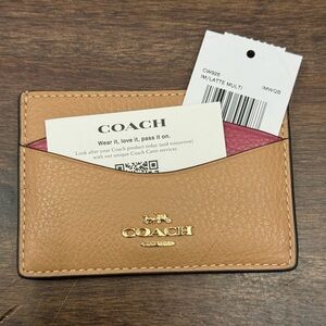 Chic Coach card wallet. Crafted in tan and pink leather. Sleek and functional. NWT
