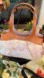 Stylish Coach shoulder bag with a tan leather trim and pink accents. Perfect for any occasion.