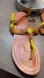 Chic Coach sandals with tan and yellow straps. Ideal for summer wear.